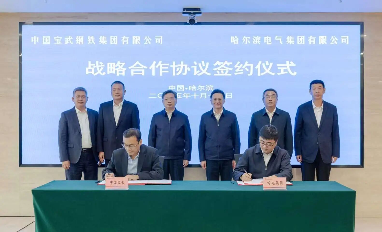 10月14日,哈電集團(tuán)與中國寶武在哈電集團(tuán)總部簽署戰(zhàn)略合作協(xié)議,就服務(wù)國家戰(zhàn)略、助力科技自立自強(qiáng)等方面進(jìn)一步加強(qiáng)戰(zhàn)略合作。哈電集團(tuán)董事長、黨委書記黃偉,總經(jīng)理、黨委副書記劉清勇,中國寶武黨委書記、董事長胡望明共同見證簽約儀式并舉行座談交流。哈電集團(tuán)黨委常委、副總經(jīng)理劉軼,中國寶武黨委常委鄒繼新代表雙方簽署戰(zhàn)略合作協(xié)議。黃偉對胡望明一行到訪表示熱烈歡迎,對中國寶武長期以來給予哈電集團(tuán)的關(guān)心和支持表示感謝,...